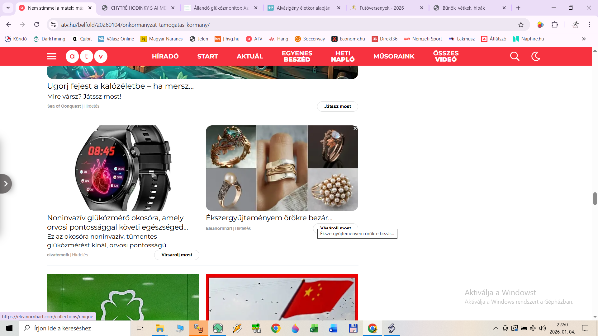 2026 Január: Már új néven is hírdetik ugyanazt a fényképen látható órát megintcsak az ATV online oldalán: